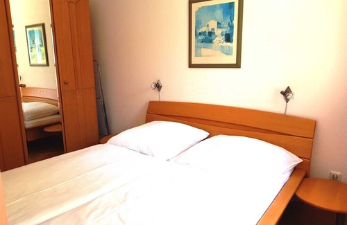 2-room apartment (43m²) on the ground floor with winter garden for up to 4 people. Living area with television, stereo, sofa bed and armchair, Kitchen with ceramic hob, dishwasher, microwave, dishwasher, toaster, kettle, coffee machine. Bedroom with double bed and single beds as well as wardrobe. Bathroom with shower and toilet. Free parking space is available Non -smoker