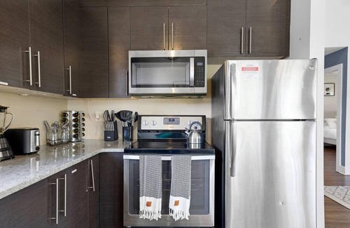 Unwind in the newer luxury two-bedroom, just 5 minutes from Downtown.