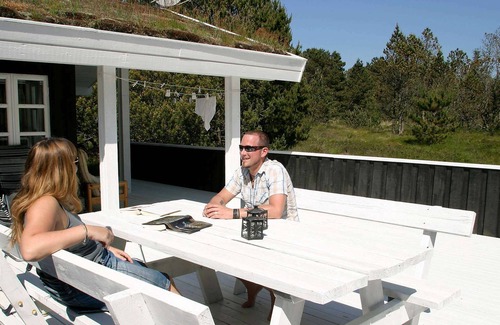Layout: open kitchen(cooker(electric), hood, coffee machine, dishwasher, freezer(60-99L), fridge-freezer), Living/bed room(electric heating)(TV(satellite, german television channels, danish TV channels (DR1 and TV2)), fireplace, CD player, stereo unit), bedroom(electric heating)(double bed), bedroom(electric heating)(2x bunk bed), bedroom(electric heating)(2x bunk bed), bedroom(electric heating)(2x bunk bed), bathroom(floor heating)(bathtub or shower, washbasin, toilet, washing machine), bathroom(floor heating)(washbasin, shower, toilet), sauna(indoor, heated, 6 persons), heating(electric), terrace, garden furniture
