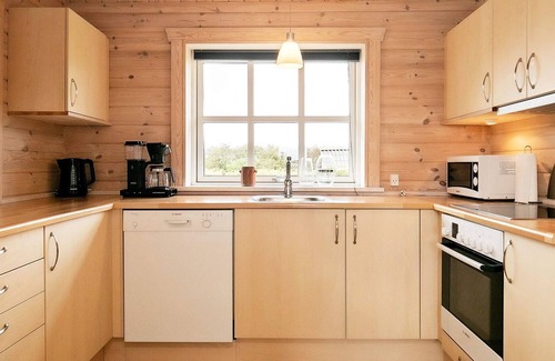 Holiday cottage with whirlpool and sauna overlooking the scenic nature area and with a small view of the ships on the ocean. The large windows provide an amazing light. 3 bedrooms, bedroom with 2-persons whirlpool and sauna, underfloor heating and shower. The large kitchen-family room is the centre of all activities. Fully equipped kitchen and bright living room. Exit to the terrace with grill and furniture. No letting to youth groups.