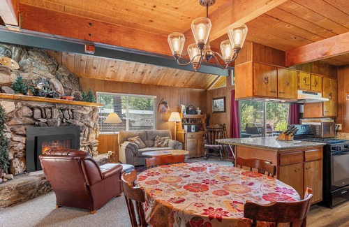 Meadow View is a 3 Bedroom, 2 Bathroom, home that sleeps up to 8 guests. The fully equipped kitchen includes a dishwasher. The family/game room has a pool table, a Smart TV (includes access to Netflix and Amazon Prime), and WiFi. The private deck has a gas BBQ for grilling your favorite meal under the stars, and there is a huge meadow in the backyard with plenty of space for a gathering or children to play. With a beautiful stone gas fireplace. Pet friendly. Does not have air conditioning. "EV Charging Station available within five miles of the cabin"