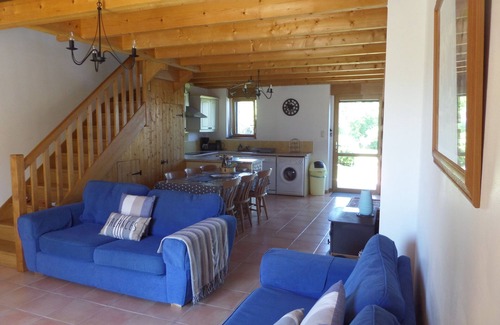 The lounge area has two 3 seater sofas, coffee tables, a wood burning stove, French and English satellite TV, DVD, speaker for mobile phone and free Wifi. Toys and books.