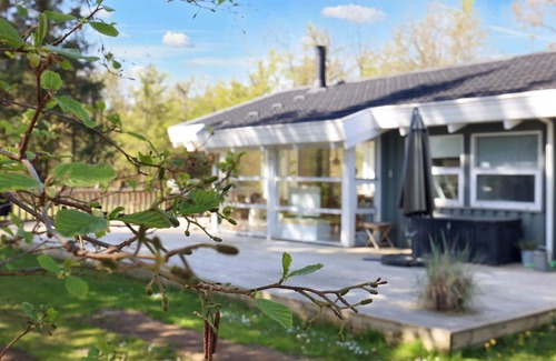 Renovated pool house located between Hals and Hou in a quiet, family-friendly area, just 600 meters from a particularly child-friendly sandy beach. This holiday home offers a well-thought-out layout ideal for family stays. The spacious open-plan kitchen flows seamlessly into the living area, which features a cozy wood-burning stove and a climate-friendly air-to-air heat pump. The house has three bedrooms: a large bedroom with a double bed, a second room with a bunk bed, and a third room with two single beds. In addition, there is a loft under the sloping roof with two more sleeping spaces, primarily suited for children. Although there is no traditional TV reception, a Chromecast is available for streaming your own content via a laptop or smartphone. The generous pool area is located at one end of the house and includes a slide for children, a whirlpool, and direct access to a smaller bathroom and a sauna, offering relaxation and wellness for the whole family. Outside, the property features a very large terrace and a 1,000 m² natural plot with plenty of space for outdoor games and activities. This holiday home combines indoor comfort, wellness amenities, and outdoor space in a peaceful setting near the coast, making it ideal for families seeking relaxation, fun, and nature. With its proximity to the sandy beach, the property is perfect for children to enjoy safe swimming, sandcastle building, and seaside play, while adults can relax in the sauna, whirlpool, or on the sun terrace. No rentals to youth groups, please.