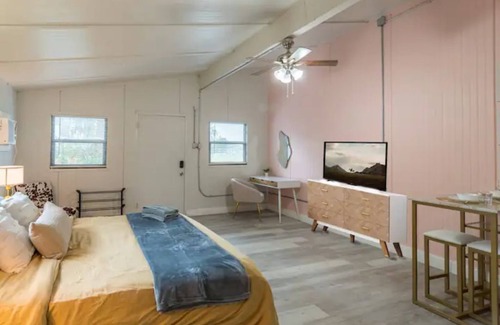 Located in DeLand, this cozy studio is perfect for couples, set on a large 2.5-acre lot. It comes with an outdoor firepit and seating area, essential amenities, a kitchenette, and a peaceful environment, making it an ideal getaway for relaxation and nature appreciation.