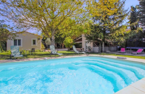 This typical Provençal vacation home made of noble materials with its pretty private pool, nestled in a delightful romantic green park shaded by old trees, welcomes you near L'Isle-sur-la-Sorgue. Enjoy privacy inside as the bedrooms are on a staggered level and on the second floor in a two-part interior. In the main wing you will find a large, cozy living room with piano and table soccer and a modern kitchen overlooking the magnificent terrace with natural shade and the garden, olive and fruit trees and outdoor playground equipment that make it a wonderful place to relax and enjoy between two baths.