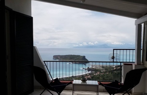 Independent apartment in a village overlooking the Gulf of Policastro. On the 1st floor you will find a living room, a fully equipped kitchen, a bathroom, a covered terrace with table and armchairs and a terrace with hot and cold shower, on the 2 'floor two bedrooms, one with a double bed and two bunk beds , a bathroom with shower and another furnished terrace. The view is wonderful and in the evening you can enjoy unforgettable sunsets. The nearest sea can be reached by car in 3 minutes and has a backdrop of stones.