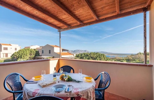 Cozy three-room apartment, a perfect seaside retreat just steps from La Pelosa Beach in Stintino. Located on the first floor of a small residential complex, the apartment features a bright living area with a fully equipped kitchenette and a single sofa bed, a double bedroom, a second bedroom with a bunk bed, and a functional bathroom with a shower. The highlight is a large covered terrace, furnished with a table and chairs, offering stunning views of the sea and Asinara Island. An internal spiral staircase connects the entrance to the apartment’s main floor, adding charm and character to this delightful coastal getaway.