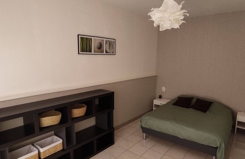 The cozy interior opens onto a 2000m2 garden planted with trees and flowers. You can relax in the deckchairs or under the pergola after a day's work or sightseeing. And why not dine outside in fine weather? A barbecue is at your disposal.