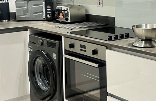 Equipped with essentials for your stay. You will have the use of an electric hob and oven, fridge freezer, microwave, toaster and washing machine