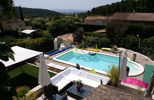 It boasts a spacious living area and an open-plan kitchen. There is a bedroom with a 160-cm bed, two bedrooms with 140-cm beds, and a bedroom with twin 90-cm beds. The house features three shower rooms and three WCs. There is also a large equipped terrace, an arbour, an outdoor living area a grill, and a barbecue. The garden is shaded. The heated pool measures 8 by 4 metres. The village and its shops are at walking distance. This is a quiet and residential location. Near Aix-en-Provence, the village offers unobstructed views of the Arc River Valley.