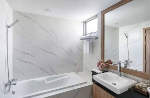 The 46-sqm Junior Suite at Grande Sukhumvit offers a thoughtfully designed one-bedroom layout, perfect for those seeking both comfort and functionality. It features a partially enclosed full kitchen, complete with modern appliances including a washer cum dryer, ideal for longer stays. The bathroom is equipped with a spacious shower with a a bathtub for a refreshing experience.
