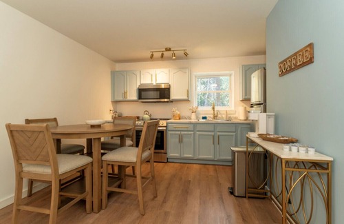 Renovated kitchen with all the cooking essentials (Keurig, toaster, cookware, wine opener - because priorities)