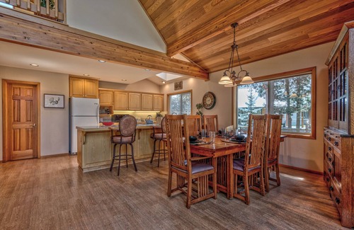 The living room is spacious and comfortable, with a cozy gas fireplace to warm up to on chilly nights. The large windows offer a stunning view of the surrounding Deschutes woods and water, additionally the plush seating is perfect for cuddling up with a good book or movie.