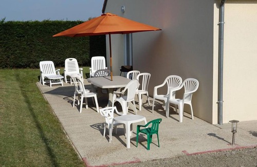 Independent house entirely on the ground floor and accessible to people with disabilities (motor, visual, mental, hearing). Living room. Kitchenette. Bedroom 1 (2 single beds). Bedroom 2 (1 double bed + 1 single bed). Bedroom 3 (1 double bed). Baby bed on request. 2 shower rooms. 2 toilets. Wifi. TV. DVD player. Hi-Fi system. Washing machine. Dishwasher. Tumble dryer. Sheets and household linen for hire. Cleaning service at an additional cost. Heating included. Private enclosed grounds. Terrace. Garden furniture. Deckchairs. Barbecue. Pétanque court. Garage. Outdoor shower. Only one pet per stay accepted for a fee. Gîte labeled "Famille Plus". This house is located in a quiet hamlet close (3km) to the dunes of Hatainville, a magnificent dune massif, and 6km from the beaches of Barneville-Carteret. It is accessible to people with disabilities.