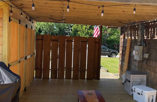 Montauk beach house, within walking distance to private beach, marinas & shops. Fenced in yard with three decks with outdoor shower. Can sleep up to 8. Great area for kids, bicycling and outdoor fun! Property includes two bikes, two sup boards, boogie boards and beach chairs for 8. retractable awning on main deck. Roof top deck and morning deck for coffee off the office. New minisplit airconditioning system. All decks are new with two new sliders with new outdoor shower
