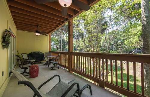 Leave the world behind and escape to our FIRST FLOOR 2 BR 2BA condo in the shadows of palmettos, magnolias and ancient moss-covered live oaks overlooking the Plantation Golf Course at Edisto Beach, SC. Spend lazy days at the oceanfront cabana with convenient facilities or strolling stretches of unspoiled beaches teeming with wildlife and strewn with seashells. Enjoy miles of bike and hiking trails, rent a kayak or charter a boat trip. Only 45 miles from downtown Charleston and an easy day trip to Savannah or Beaufort, this unspoiled Sea Island retreat provides lots of year round outdoor activities like hunting, fishing, shrimping, crabbing, canoeing, kayaking, hiking, shelling, bird watching and programs and activities at the adjacent state park and wildlife preserves. Bring your camera, the historic charm and natural beauty of the island and nearby cities is unmatched! Peaceful, quiet Edisto is off the beaten path, yet there are just enough restaurants, nightspots, museums, shops and galleries to make it interesting. This privately owned showcase condo INSIDE the Wyndham Ocean Ridge Resort was, unfortunately, destroyed by a fire in 2010 but has been rebuilt with hand scraped teak laminate and ceramic tile floors and the latest in energy efficient, FIRE PROTECTED construction . It is beautifully decorated with custom window treatments, lovely art work and even a few antiques. One local agency has described it as the nicest 2 bedroom unit on Edisto. The kitchen is very well equipped with dishwasher, disposal, microwave, refrigerator with ice maker , FULL SIZED stacked washer and dryer and complete sets of dishes, cookware and utensils. Cabinets are stocked with staples AND we now have our own REVERSE OSMOSIS water system so there is no more hauling bottled water up the stairs!! Wireless internet and free long distance phone service are also included along with unlimited movies via NETFLIX streaming and extended cable TV. The dining table seats 6 and the comfortable living room provides a 42 inch TV with extended cable, BlueRay DVD and a lovely entertainment center stocked with books and movies. A queen sized sofa sleeper with premium mattress, 2 leather recliners, a rocking chair and drawer space in the living room allow the unit to sleep up to 5 people although 4 will be more comfortable. Large sliding glass doors open from the living room and master bedroom onto a covered porch equipped with a gas grill, ceiling fans and comfortable seating for 6. There is a plush king sized bed in the Low Country Plantation bedroom. In the Seaside Cottage bedroom, the bed can be configured as a king or split into a pair of single beds. Each bedroom has its own 32 inch television , double dresser, an upholstered chair and bathroom (1 tub, 1 shower) Move out house cleaning are provided. Central heat and air provide year round comfort. Ceiling fans have been added to each room to make the most of the island breezes as well. NO SMOKING INDOORS. NO PETS. Unfortunately, there is no room for cribs, air mattresses or rollaways. Wyndham Ocean Ridge does not allow Motorcycles/Trailers/RVs/Boats/Golf Carts.