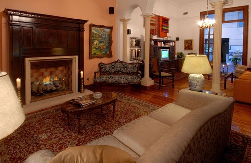Think of living in the luxury of the Argentine bourgeoisie of the early 20th century but with the modern conveniences of the 21st! Our flat revolves around a large, open, Spanish-style patio with ample seating and the essential parrilla. Off of it is a huge master suite with seating area, an over-sized marble walk-in bath, a dressing room (California closet) and a boudoir; a family room decorated in Spanish colonial style; an entirely tiled and well-equipped galley kitchen; and a large bath with deep jacuzzi tub. Beyond the family room is a formal living/dining area with a cozy fireplace, a den/office space with a pull-out bed, and a balcony facing the street. Above the kitchen is the old maid's quarters, now converted into an "industrial" loft bedroom with a private bath.