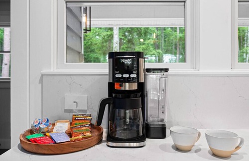Two fully equipped kitchen on each level have everything you’ll need to cook up tasty meals, including new stainless steel appliances, an insta-pot, a crock pot, a blender, and two separate coffee station with an assortment of coffee and tea available. There are also kids' bowls, utensils, and a high chair for young families and pet supplies.