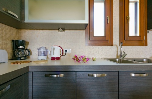 Our house is designed in such a way as to offer the best possible holiday accommodation experience. 2 bedrooms and ofcourse 2 bathrooms. One with a big double bed and the other with twins. Extra comfortable mattesses and a realxing colors and a cute atmosphere for the perfect sleep. The kitchen is fully equipped with all modern amenities ready to satisfy even the most demanding chef. The living room another relaxing point with comfortable sofa a big smart TV, WIFI Internet all over the place, direct access to the veranda where the view is breathtaking, perfect to enjoy the sunshine but also the best for a romantic sunset with a glass of wine. There is a free parking spot ofcourse. Airconditioning in every room and generally everything is spacious and in abundance so as to create the perfect holiday spirit.