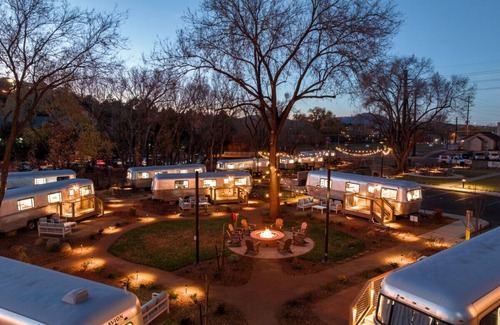Welcome to your dream getaway in the heart of downtown Prescott, AZ! Step into luxury and comfort with our meticulously renovated 34' Avion trailer, nestled in a charming property with 10 units.