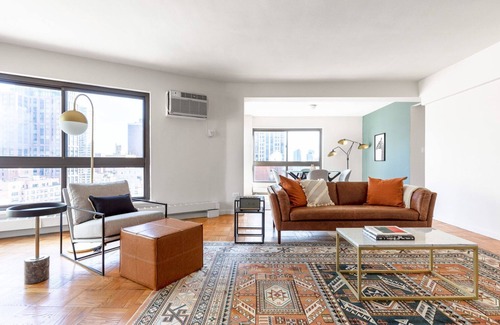 Show up and start living from day one in New York with this bright two bedroom Blueground apartment. You’ll love coming home to this thoughtfully furnished, beautifully designed, and fully equipped Midtown East home with stunning high floor views over the city. (ID #NYC440)