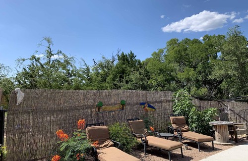 Even though there are six cabins here, they're positioned so you'll have a peaceful and private view of the meadow on the 20-acre property, and not your neighbors. One of the many unique features of this Hill Country hideaway is the sense of privacy, in tandem with the huge pavilion, where you can meet and hang out with new-found friends. The seasonal Red Bluff Creek bubbles quietly through the grounds, so if you're in a quiet mood, you're set-and if you're feeling more outgoing, the pavilion awaits!