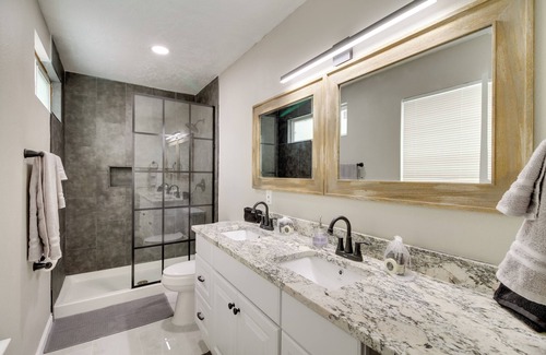 Discover the ultimate retreat at this stunning vacation rental in Albuquerque! With a private hot tub and pool, an incredible outdoor space, and an updated interior, this 3-bedroom, 2-bathroom home is an oasis of relaxation. Immerse yourself in the beauty of nature with nearby hiking trails at Petroglyph National Monument, or explore the vibrant culture of Old Town Albuquerque. After a day of adventure, prepare a meal in the fully equipped kitchen and enjoy an al fresco dinner in the backyard.