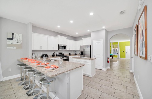 This home is wonderfully located a quarter-mile south of the Solterra Resort Clubhouse, a 6700-square-foot space that features a beach-entry swimming pool with a water slide, a lazy river, poolside cabanas, tennis courts, a gym, a children's playground, and the Cafe Sol Bar & Grill. If you're looking to explore the countless activities and attractions in the greater Orlando area, Disney World - along with Epcot, Blizzard Beach, and Typhoon Lagoon - is 12 miles northeast, SeaWorld Orlando is 17 miles northeast, and Universal Studios' Islands of Adventure and the Wizarding World of Harry Potter are 22 miles northeast.