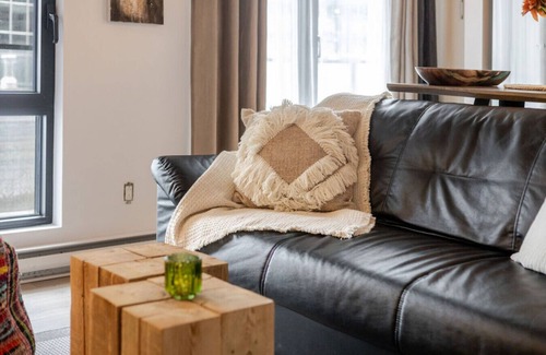 Step into your private urban retreat in this thoughtfully designed 1-bedroom apartment located just off the edge of downtown Montreal, near the charm and waterfront of the Old Port. Just a 3-minute walk from Square-Victoria–OACI metro station, this unit offers a blend of comfort and accessibility with a private balcony, Smart HD TV with streaming, and in-unit washer & dryer—perfect for business travelers, couples, or solo guests.