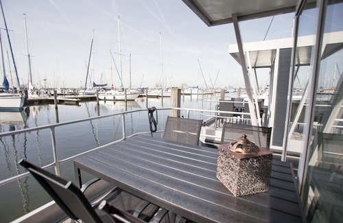 Experience the charm of a houseboat with a view of the water and modern comfort - a unique holiday experience awaits you!