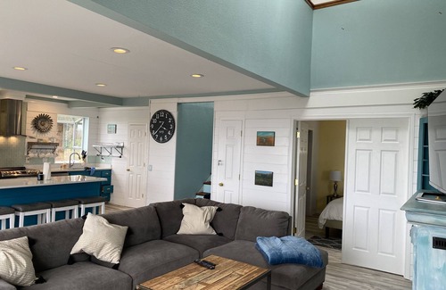 Take a break and unwind at this peaceful oasis situated in a quiet neighborhood with views of Protection Island, Mt. Baker, Discovery Bay, and the Salish Sea. Enjoy drinks on the patio furniture with a gas fireplace, or take a stroll on the public beach just a few blocks away (note: much of the beach and tidelands are privately owned so please only stay on the public area). On rainy days you can curl up inside and enjoy the view while staying dry.