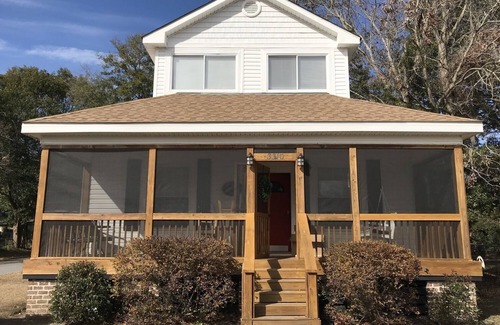 This house is in the historic fishing village 'Thunderbolt' which is nestled between downtown Savannah and Whitmarsh Island. Convenient to both the city and the beach this house is walking distance to Thunderbolt Marina, Tubby's restaurant and bar as well as the beautiful public riverwalk area along the inter-coastal waterway which many believe is the prettiest water view in Savannah. Five bedrooms, three bathrooms, a living room, dining room and equipped kitchen. Screened front porch and open air back deck with grill. Private parking for 3-4 cars plus easy free street parking for other vehicles if needed.