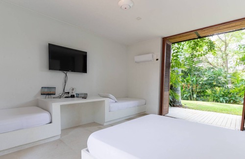 It has 4 bedrooms, with private bathroom, view of nature and the interior patio of the house. You can also enjoy a peaceful rest in the hammocks located in the room overlooking the pool.