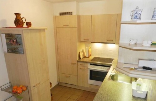Living/dining room with open-plan kitchen (among other things furnished with coffee machine with capsules (Nespresso) as well as a fondue- and raclette-set), dining table,sofa, telephone and TV. 1 bedroom with 2 pushed together single beds(2x90x200cm). 1 bathroom with bathtub and toilet.WiFi. -> The appartment is bookable for a maximum of 2 persons.