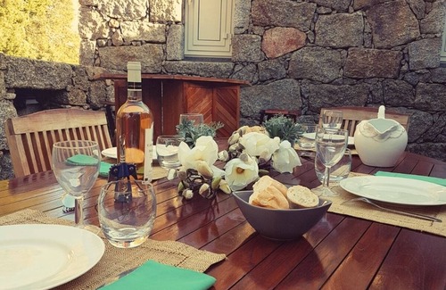 Between the sea and the mountains (15 minutes away) and in the most Corsican of Corsican cities, you will appreciate the calm of the countryside with large relaxation areas, a garden furniture, a terrace of 50 square meters with barbecue, a stone fountain shaded by century-old oaks where you can quench your thirst, a 120 square meter swimming pool with three showers and three toilets, one of which is for children. Parasols and deckchairs are provided. Arrivals will be between 4 p.m. and 7 p.m., and departures before 10 a.m.