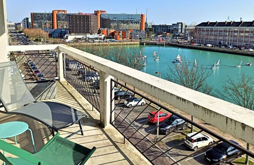 Bright living room with panoramic view of the commercial basin and south-facing terrace: - living room/lounge with connected flat screen TV, very good quality convertible sofa (with mattress topper for more comfort), - Fully equipped open kitchen with exceptional view (dishwasher, filter coffee maker, built-in oven, toaster, induction hob, freezer, etc.), - Beautiful master suite with 160x200cm bed and private bathroom with Italian shower and washing machine, - Independent WC with washbasin. Large terrace with garden furniture for 4 people and deckchairs available. Sheets, towels and charges (heating and electricity) are included for your comfort. Parking spaces near the residence. Possibility to come by train. The apartment is located on the 3rd floor with elevator in a popular tourist area of Le Havre. You will particularly appreciate the exceptional panoramic view and the terrace with garden furniture, deckchairs and awning. The owners have renovated it with choice equipment combining comfort and modernity and will be happy to guide you to the many tourist attractions nearby. You can do everything on foot and easily travel between Etretat and Honfleur. Rental charges not included in your rental: - cleaning (compulsory: €50) - the tourist tax. Television, Baby bed, Sheets provided, Household linen, Internet connection, Apartment, Lift, Balcony, Washing machine, Dishwasher, Cleaning fee, Terrace, Microwave, Flat screen TV, Freezer, Garden furniture. Unless stated, services such as cleaning, bed linen, towels etc. are not included in the price of this rental. If pets are allowed (information in the advertisement), charges may be applicable. Only equipment mentioned in this advertisement are present. Equipment not mentioned are not considered to be present.