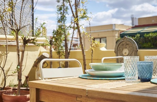 Brigadier is a penthouse in the Salamanca district with a spectacular terrace of 21 m2 to enjoy nice meals under the Madrid sky. This spacious and bright penthouse is located in a modernist building from the early twentieth century, perfectly restored with elevator and concierge. All the rooms have natural light. As in all our NESTICs, you will find a modern and functional design where every detail has been carefully thought out for your enjoyment and relaxation. As always when you stay with us, utilities, weekly cleaning and fast Wifi are included. In Brigadier you will find original works by the artist José Luis Jiménez Algarabel. Enjoy the magnificent Madrid sky in one of the most privileged areas of the city.