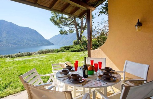A spacious renovated home with a 180 degree panoramic view of the lake - Lake Como. The outstanding view of beautiful Lake Como and spectacular mountains will ensure you want to return time and again. Tastefully furnished for up to 8 guests. 3 bedrooms 2 bathrooms including shower and wc, private secure parking, a stylish brand new kitchen. Private terrace area for alfresco dining plus huge communal gardens for relaxation. Secure gated parking. Electric coffee maker. Private parking for 1 car.