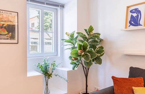 The apartment is in the heart of the historic center of Paço de Arco, in a carefully restored 1920 building.