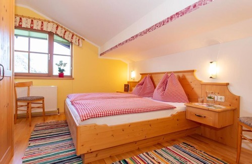 The apartment CHRISTL is very cozy and comfortably furnished. It consists of 2 bedrooms, a kitchen, a spacious bathroom and a separate toilet. The sunny balcony you enter directly through the kitchen. Satellite TV and Wi-Fi connection are available in the apartment. For breakfast, we offer you a breakfast basket, filled with our self-produced products (butter, cheese, various jams, bacon, bread, eggs, milk, bread rolls, various tea blends) to enjoy in the apartment. You can choose the products according to your wishes.