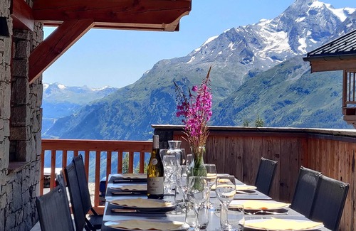 Myrtilles apartment in a magnificent Chalet built in 2016, nestled in the hamlet of Eucherts, facing south, it overlooks the Tarentaise valley and offers panoramic views to the Tignes dam. The chalet is located on the green promenade which links Les Eucherts to the center of La Rosière, and it is close to the slopes (departure via the Hyatt piste, return via the village link)