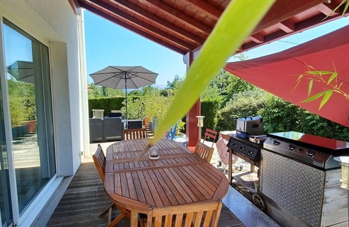 The house is 115 m2, is very bright thanks to its bay windows, modern decoration. A wooden terrace hosts a garden furniture, and you will enjoy a superb mountain view !!