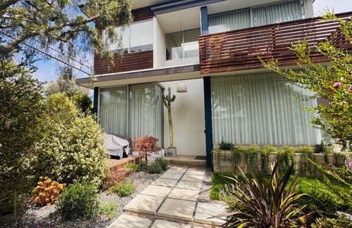 Set on a corner lot along one of Venice’s most beloved walk streets, this home by Robert Thibodeau offers a rare balance of modern edge and soulful warmth. Currently configured as a two-bedroom with a third flexible space upstairs, the home features striking design elements, curated interiors, and seamless indoor-outdoor flow. Surrounded by greenery and filled with natural light, it’s an elevated monthly rental for those seeking beauty, privacy, and connection to the best of the Westside.