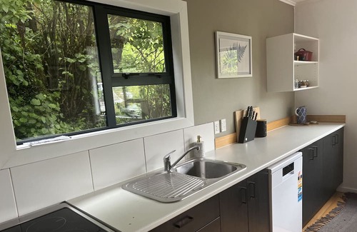 Feel like you are in a bush retreat in this one bedroom apartment in Aro Valley. Near Kelburn and Aro Valley villages with cafes and bars, Zealandia, and Waimapihi nature reserve with trails and mountain biking. This apartment comes with a full kitchen, lounge with streaming services (Netflix, TVNZ, Apple TV and Neon), WiFi, Queen bed, heat pump and air ventilation system, recently remodelled bathroom and full laundry, and an office to work or store things. There are three outdoor spaces, one with a Weber BBQ. Off-road car park available. Note the property is about two full flights of stairs above the street.