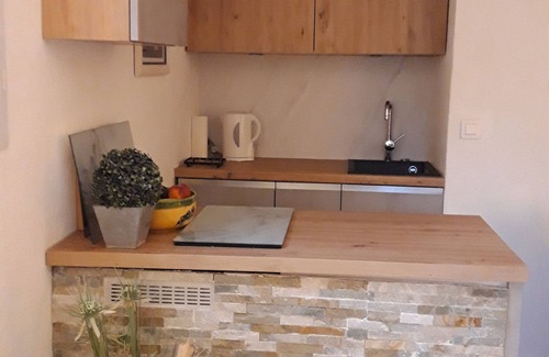 The small kitchen with dishwasher is equipped with everything you need for self-catering.