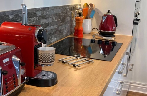 Guests are amazed to discover what we have managed to fit into a relatively confined space whilst retaining the airiness. Some call it a 'tardis'. We call it an attic but it covers two floors. The ground floor is a lifestyle room with a full kitchen: dishwasher, ceramic hob, fan oven, microwave, DeLonghi small appliances and Krups Nespresso coffee machine with frother. There is everything in the kitchen for the cook to prepare a 3 course meal. In the sitting area there is a retro vinyl record player, combining CD and cassette player, Bluetooth speakers and a log burning stove. - great for those cold winter nights or cooler evenings.