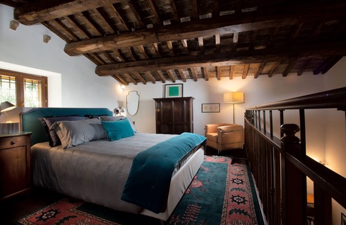This lovingly restored artist’s home is located in a ‘sacred grove’ on the hillside of Monteluco, which has a wooded nature preserve facing Spoleto. The property sits tranquilly amid olives groves and is within a stone’s throw of hiking paths that wind up through a forest renowned since ancient Roman times. La Torre dell'Artista includes: Living room with fireplace and spectacular views, renovated eat-in kitchen with working fireplace and windows opening out to the covered dining area for serving food outdoors. Downstairs, the principal bedroom with en-suite bath opens out onto a garden terrace with views out over Spoleto and the mountains beyond. Upstairs, the sleeping loft has a double bed with ensuite bath. There is a third bath with shower and separate laundry/utility room on the main floor beyond the kitchen. A shaded dining porch is outside the kitchen as well as a shaded car park with E/V charger and an extensive garden amidst the olive groves. The property has wifi throughout and a plunge pool/spa area that is located close to the house but very private, carved into the hillside within the original stone washhouse walls with a spectacular view out over the town of Spoleto and surrounding hills. The plunge pool is open April through November and is heatable in the spring and fall. It has jetted benches and there is a refreshing outdoor shower nearby. Please note: the driveway is steep and the house is a tower on three levels so is unsuitable for guests with mobility issues. The pool is not fenced so is unsuitable for families with children from 2 to 12.