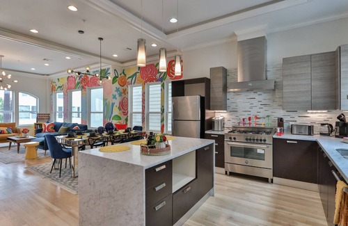 Experience Houston by staying in this colorful 4BR 4.5Bath townhouse nestled in the booming Montrose neighborhood. It promises a relaxing retreat with a unique interior design and a rooftop terrace from which you‘ll be able to marvel at the city views and plot the route for your next unforgettable adventure.