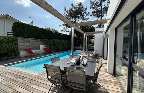Best-rates for the Anglet house starts from $997 per night with includes Oceanfront, Entertainment, Barbecue/Outdoor Cooking, Child Friendly, Laundry, Fireplace/Heating, Parking, TV, Wellness Facilities, Pool, Private Pool, Internet, Kitchen, Guest Services, View, Ocean View, Balcony/Terrace, Security/Safety, Bedding/Linens with all other facilities. Casai.co.za matches every traveler with their perfect accommodation, whether you are traveling with a group, friends, family, or pets.