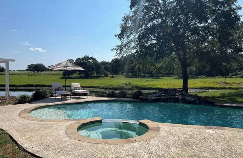 Welcome to St. Jerome House! Located just 10 minutes from the town of Round Top and 10 minutes from Downtown Fayetteville. Close to town, yet perfect for a secluded getaway! This private oasis can sleep up to 9 people between. Take a swim in the (unheated) pool during the day, and relax and dine on the beautiful patio in the evening. Please note, this listing is just the main house. The property can sleep up to 15 if booked with the guest house. See entire property listing for more space!
